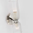 Reinterpreting mid-century French design with a contemporary lens, the Asalea by AERIN combines the elegance of clear ribbed glass with polished nickel and hand-rubbed antique brass metal finishes. Available in a two-tiered chandelier and sconce, the two-cup-shaped lights create refined silhouettes that can accent any interior style. Suspended on a chain, the chandelier will make a stunning focal point in a dining or living room, while the sconce will provide ample light in hallways and bathrooms.