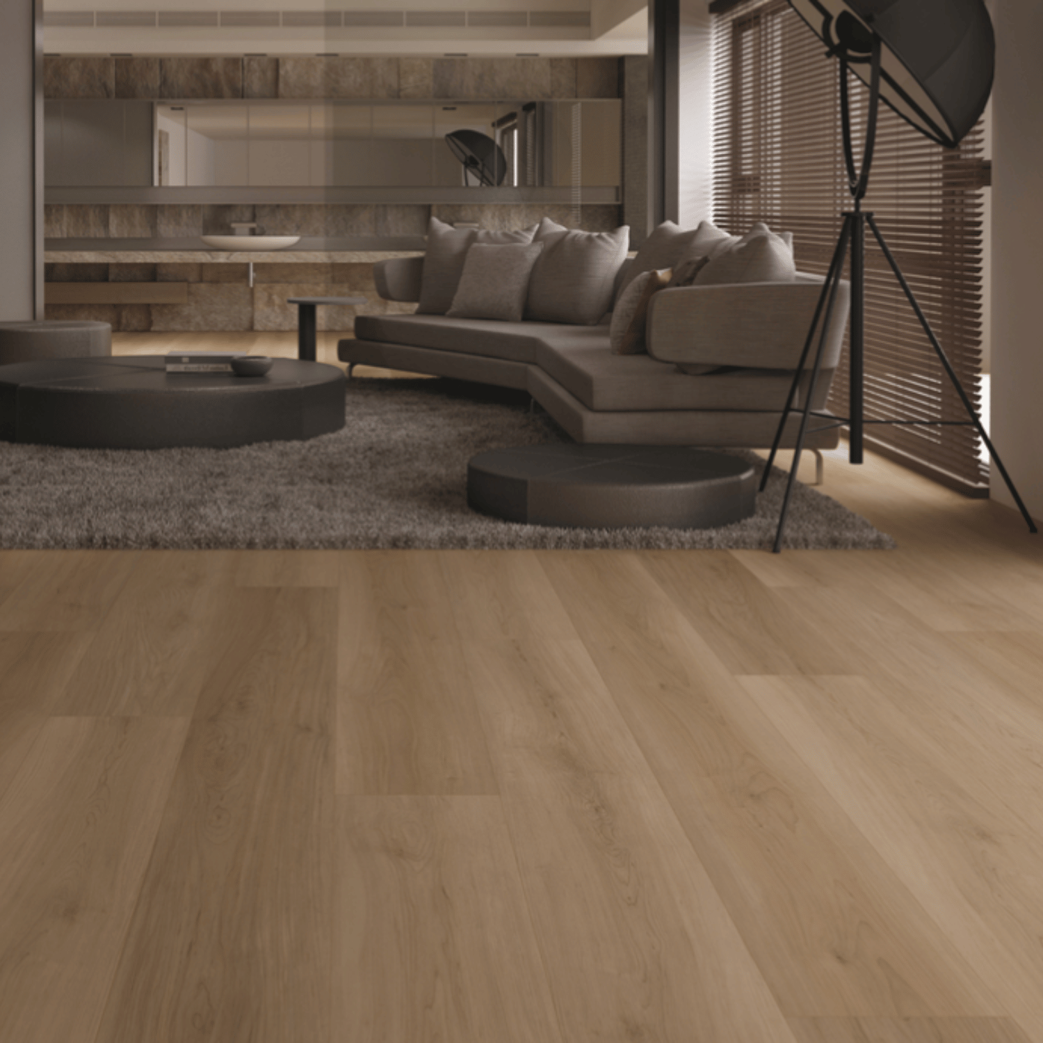 Aquamate laminate floors have undergone extensive testing, including a rigorous 72-hour water resistance test and an abrasion resistance test rated at AC4 for durability. Featuring Embossed in Register (EIR) technology, the surface texture replicates the natural grain of real hardwood, offering a lifelike appearance. With coloured bevels on all four sides and a licensed 5G Valinge click system, the Aquamate Series ensures an easy, fast, and secure installation, seamlessly combining practicality with aesthetic appeal.
