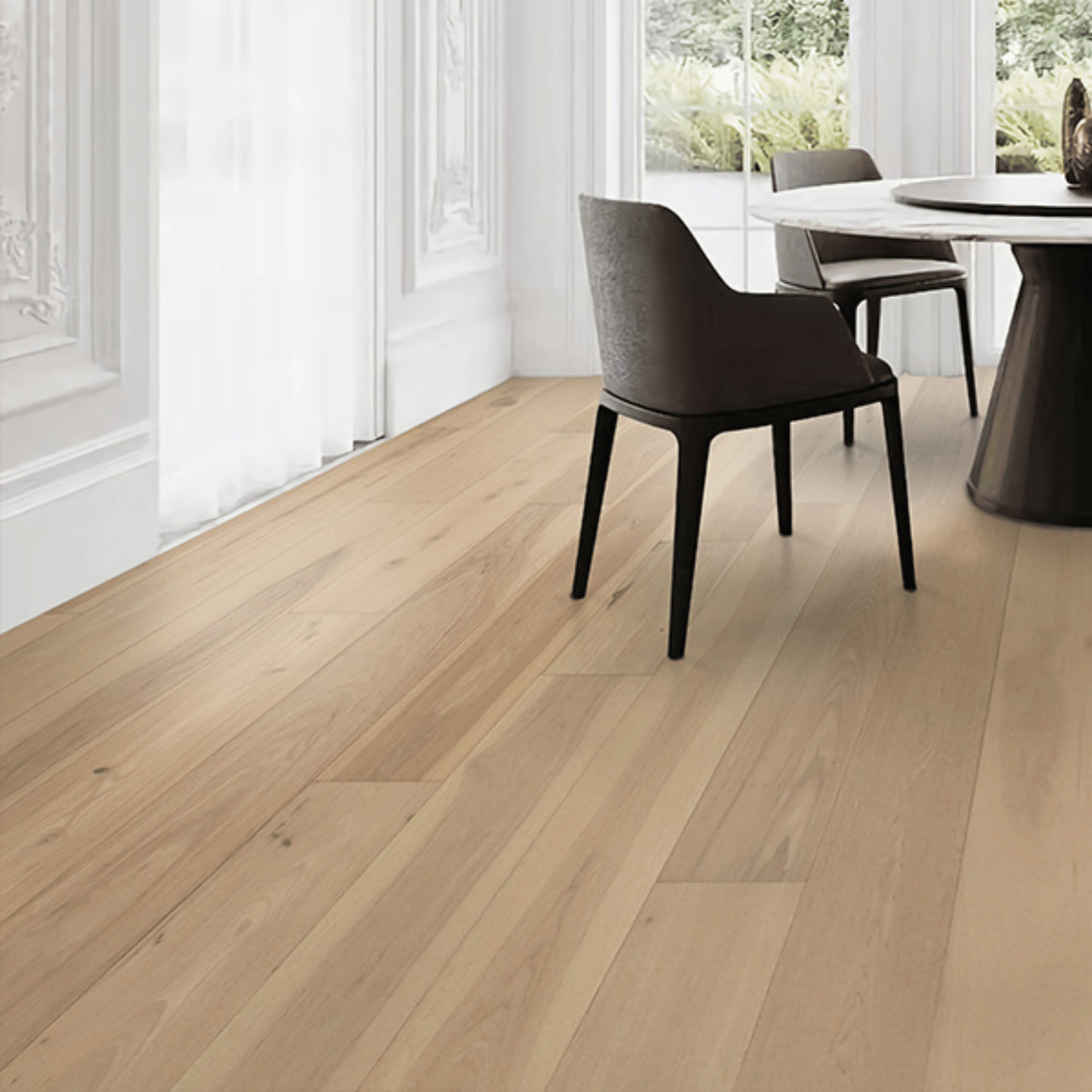The Master Artisan hardwood collection from Twelve Oaks embodies the pinnacle of craftsmanship and elegance. Each plank measures an impressive 3/4" thick, 8-5/8" wide, and 86-5/8" long, providing a robust and expansive foundation for any space. Crafted from premium wood (White Oak, American Oak or Hickory) this collection exudes natural beauty and strength. The subtle Micro V-Beveled Edge enhances the aesthetic appeal, adding a touch of sophistication to the seamless installation. Backed by a 35-Year Limited Residential Warranty, the Master Artisan collection ensures lasting durability and peace of mind, making it a timeless investment for your home.