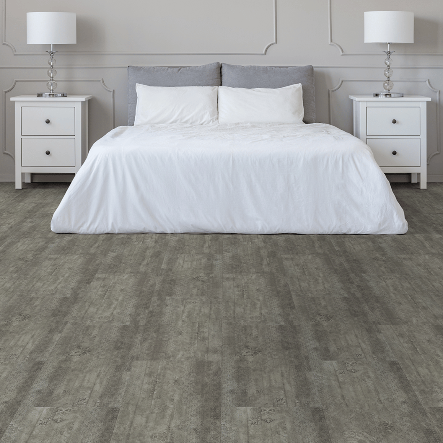 - High-density rigid core vinyl planks (SPC) – sturdy enough for heavy furniture like kitchen cabinets and islands
