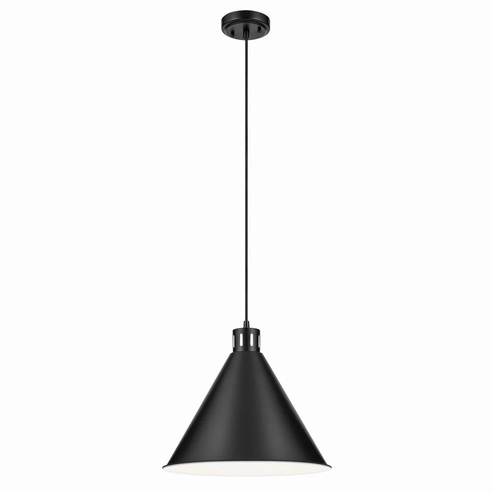 The 1-Light Black Cone Pendant blends a bold industrial silhouette with clever cut-out detailing that really packs a punch of contemporary style. The matte black finish and matching black woven cord create a look that is both refined and incredibly laid back, making it the perfect sidekick for your space. Whether you are hanging it solo or in a stylish row, this pendant brings a touch of chic ease that feels friendly and welcoming.