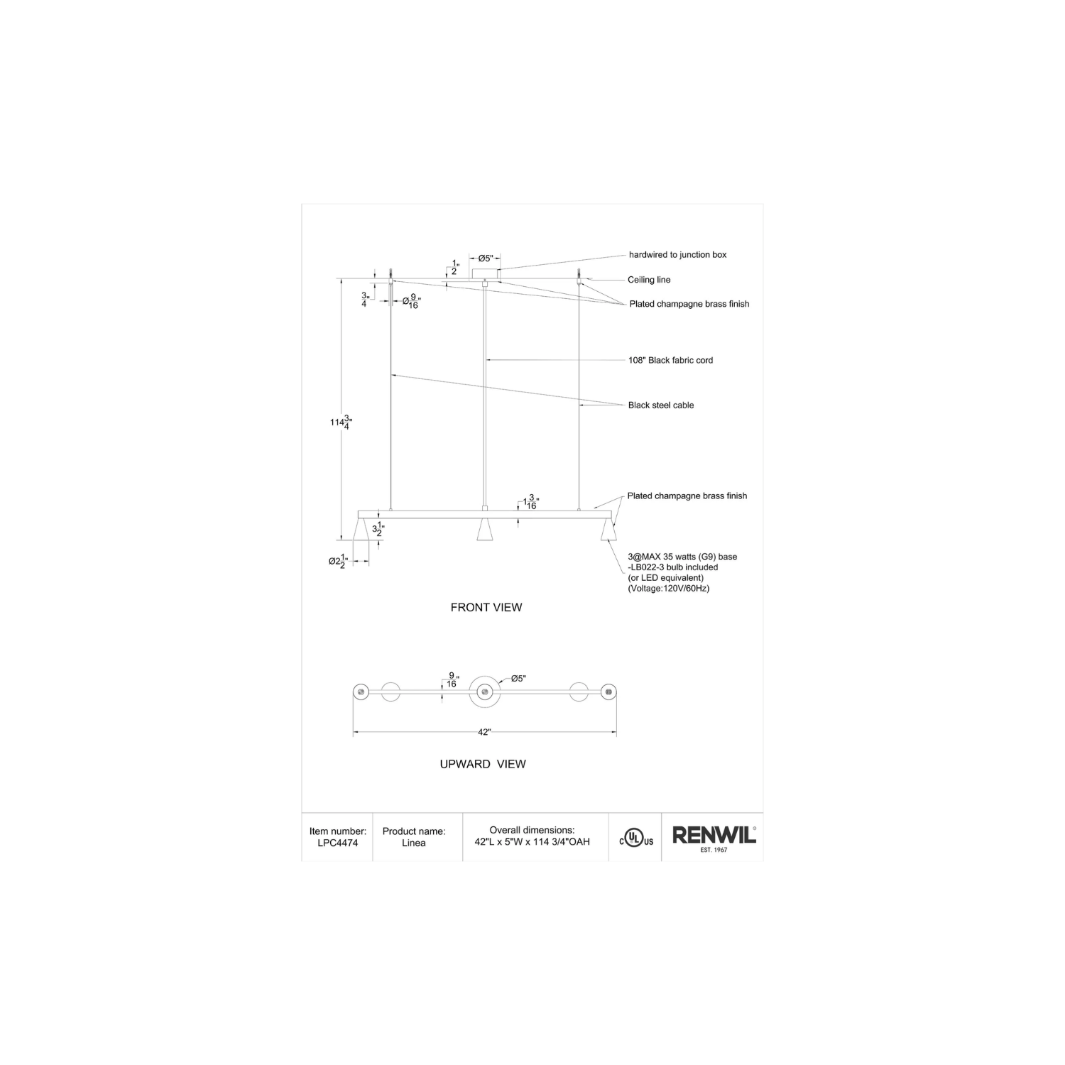 Upgrade your home decor with the stunning Linea 42" Wide 3-Light Chandelier in Champagne. Featuring a sleek plated finish and high-quality iron construction, this chandelier is built to function while adding a subtle touch of elegance to any room. Its hardwired installation ensures reliable, integrated performance while seamlessly connecting with standard G9 sockets. The champagne-colored finish seamlessly blends with different color schemes, making it an excellent choice for any decor style. With three lights, this chandelier provides ample light and a warm, inviting atmosphere. Perfect for any space, the Linea 42" Wide 3-Light Chandelier is sure to elevate your home's aesthetic.