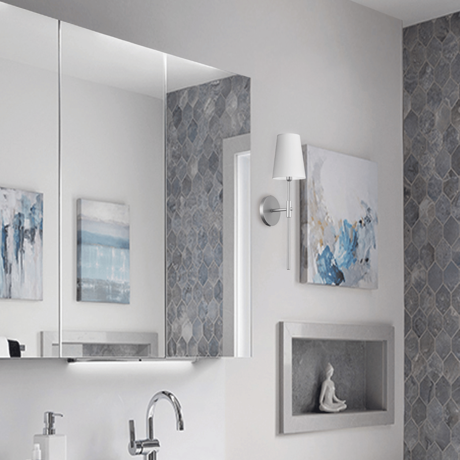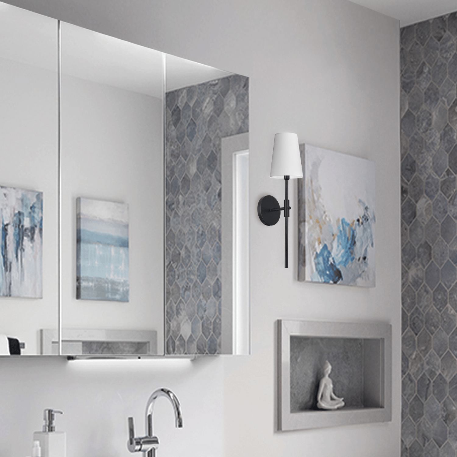 Explore versatile types to match your layout. Choose horizontal sconces for sleek, modern lines along vanities or corridors; picture lights to spotlight art and shelving; and classic double sconces for balanced symmetry beside mirrors or headboards. Prefer a softer look? Discover drum shades for diffused glow, or make a statement with chandelier-inspired sconces for a touch of glam. Options range from single-light to multi-light configurations so you can scale brightness to the room.